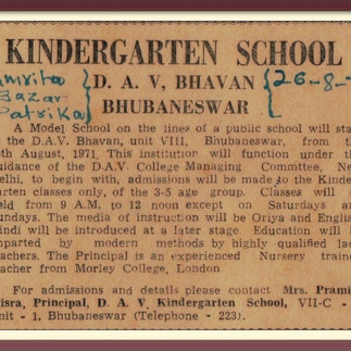 Upon her return to Odisha, India, she would be called upon by the then Governor Khosla to start the first DAV school, Bhubaneswar, as Founder Principal. This was a matter of great pride for my father and the family.